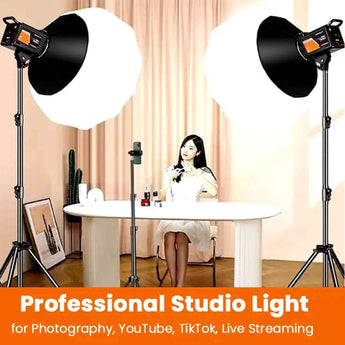 Plokama 400S është një set profesional ndriçimi me fuqi 40W, i pajisur me mbajtëse të rregullueshme dhe qese “Balloon Soft Light” që shpërndan dritën në mënyrë të butë dhe uniforme. Ky set është ideal për fotografi, video, livestream, makeup dhe përmbajtje profesionale ku kërkohet ndriçim pa hije të forta dhe pamje natyrale.