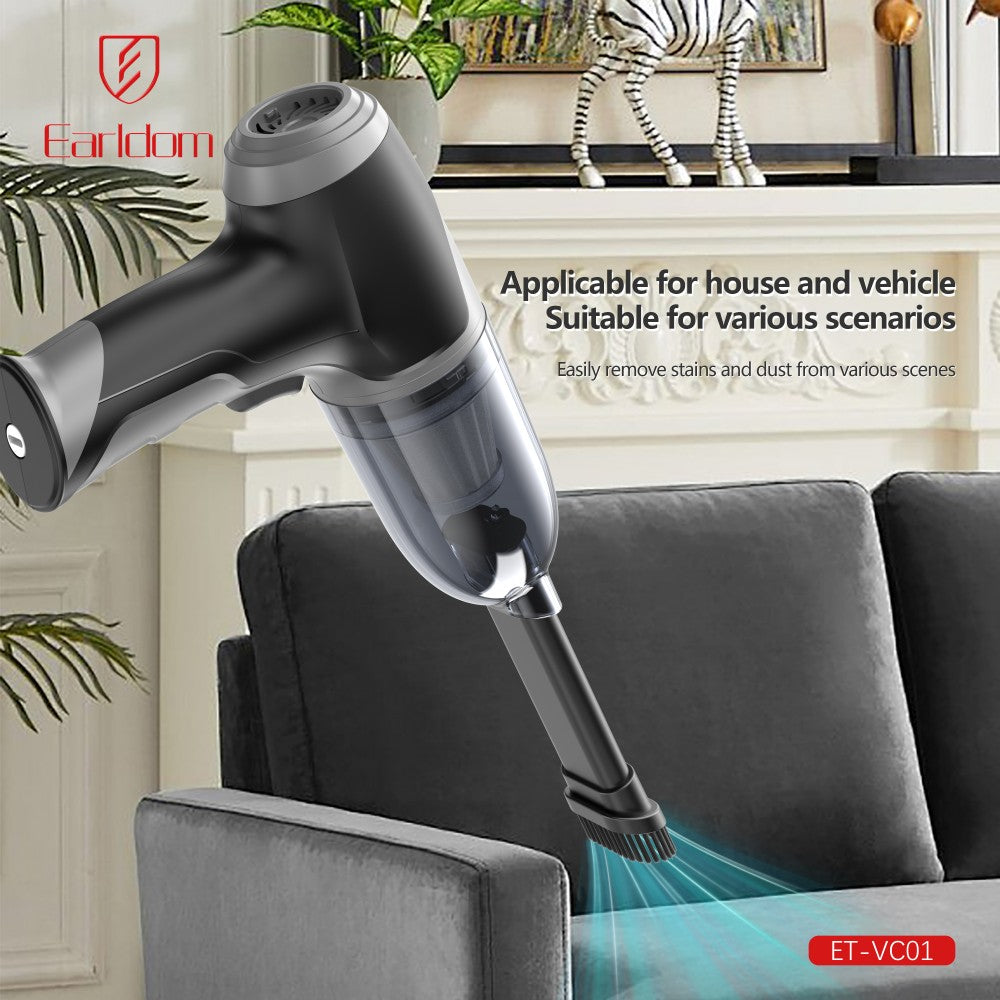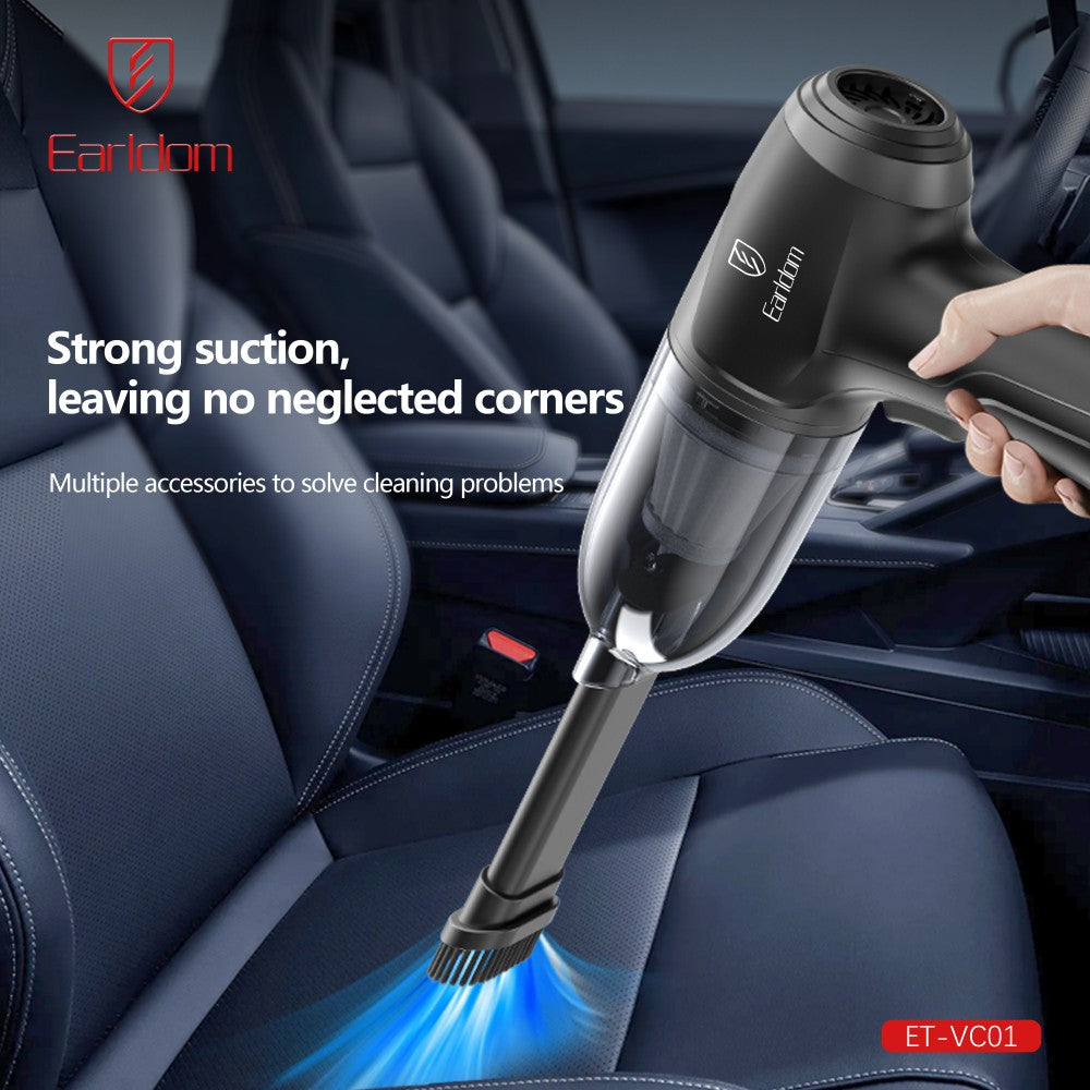 Fshesa portative për veturë Earldom VC01 është një pajisje kompakte dhe e fuqishme për pastrimin e brendësisë së automjetit. Me forcë thithjeje 6000Pa dhe bateri të integruar, kjo fshesë është ideale për pastrimin e pluhurit, rërës, thërrimeve dhe papastërtive të përditshme në ulëse, tapete dhe hapësira të vështira për t’u arritur. Dizajni portativ dhe përdorimi pa kabllo e bëjnë shumë praktike për përdorim të shpejtë në çdo moment.