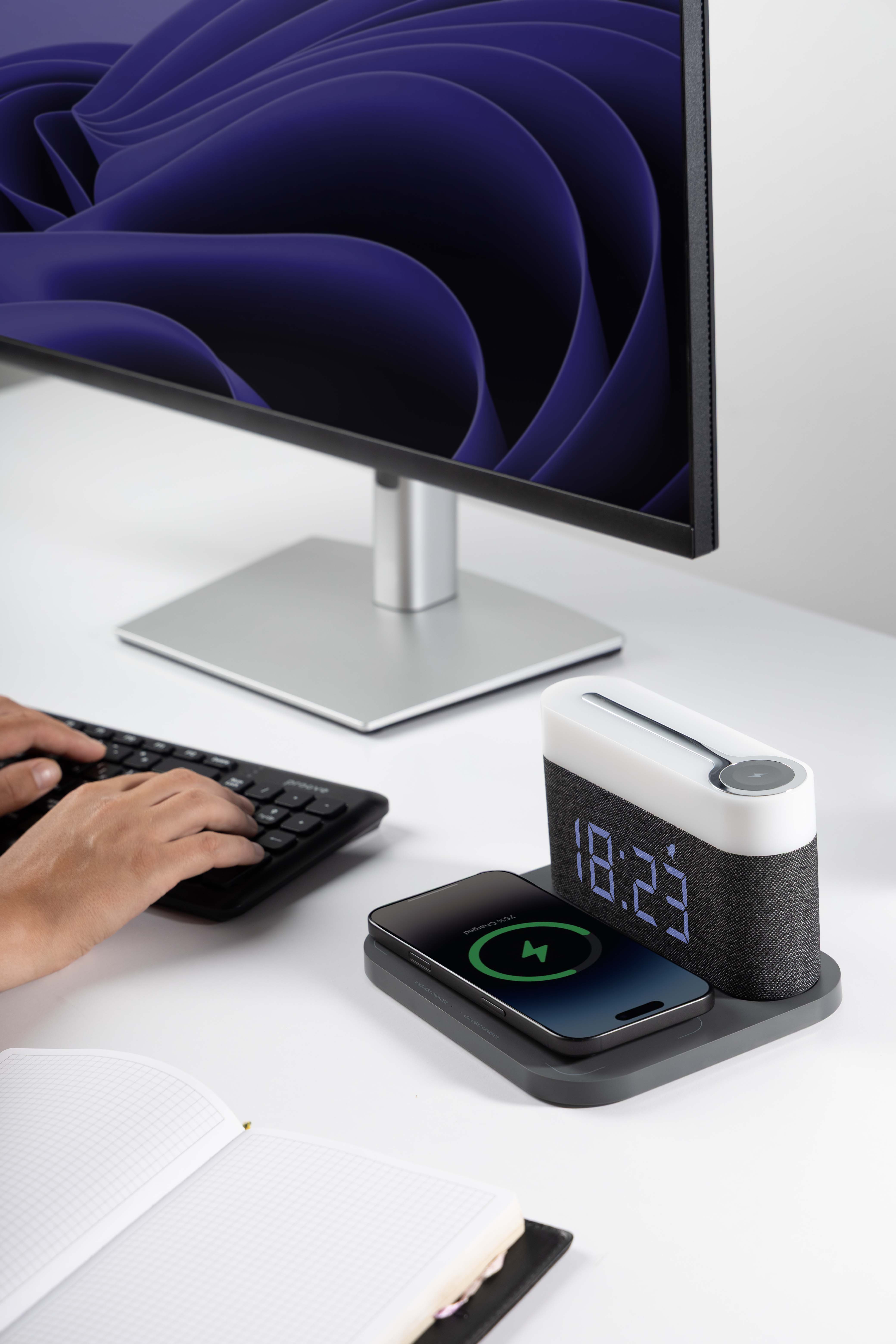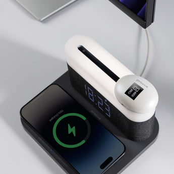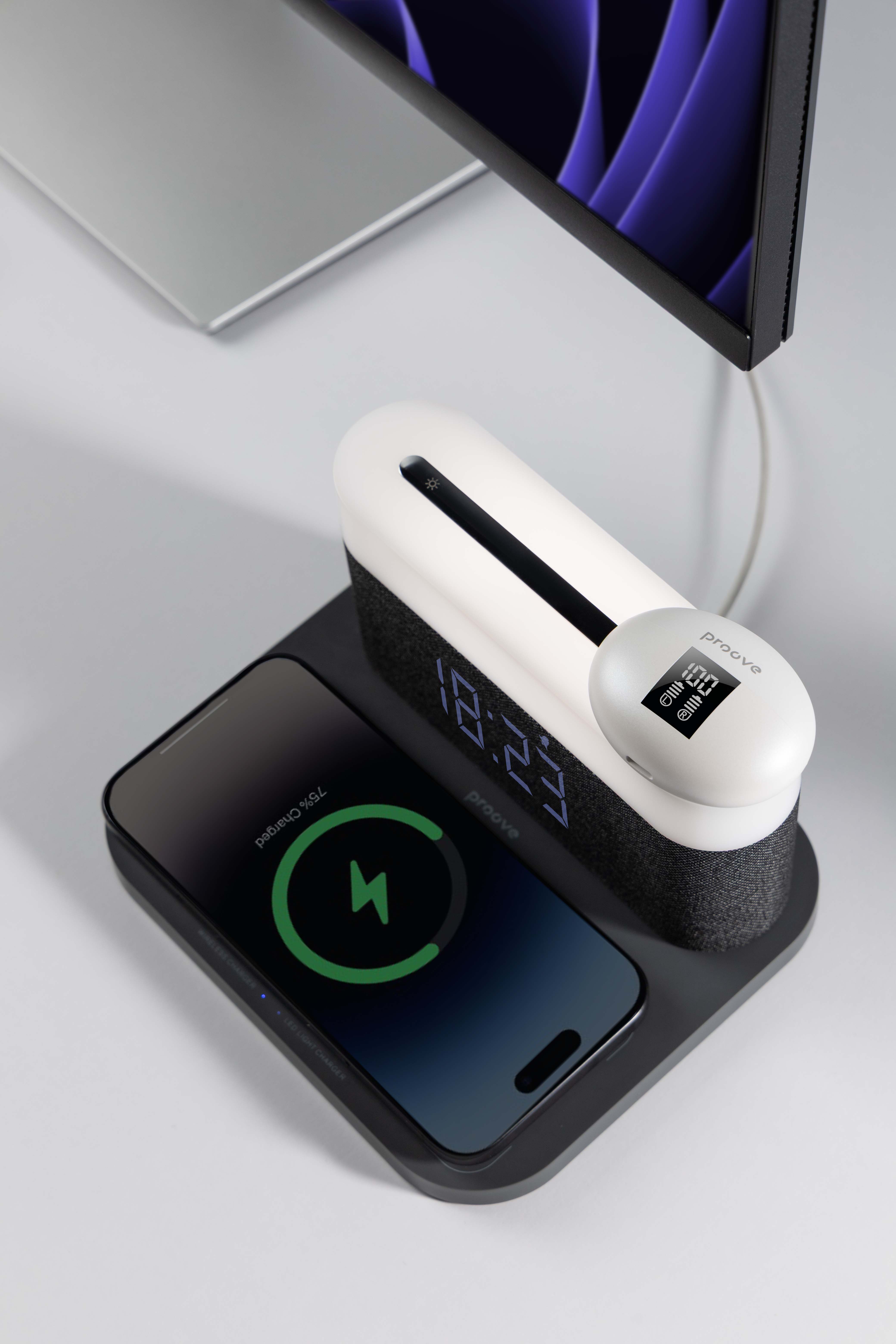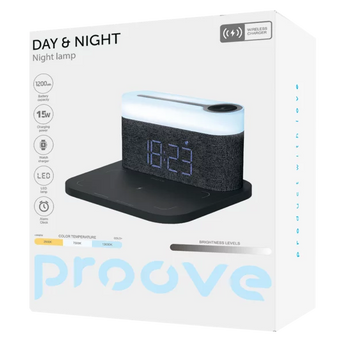 Proove Day & Night është një llampë nate multifunksionale që kombinon ndriçimin e butë LED me karikim wireless të shpejtë për telefonin tuaj. Me sensor drite automatik, fuqi karikimi 15W dhe dizajn modern minimalist, kjo pajisje është zgjidhja perfekte për komodinë, tavolinën e punës apo dhomën e gjumit.