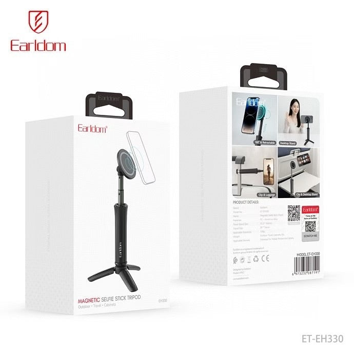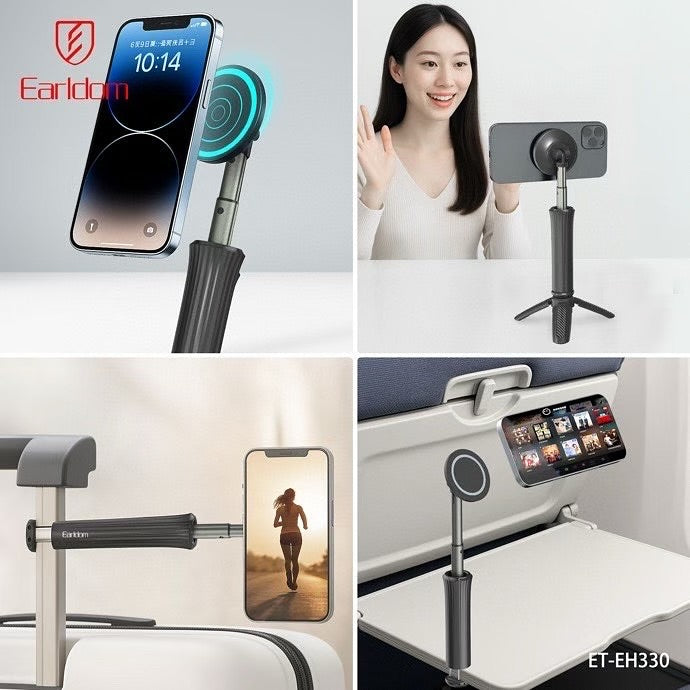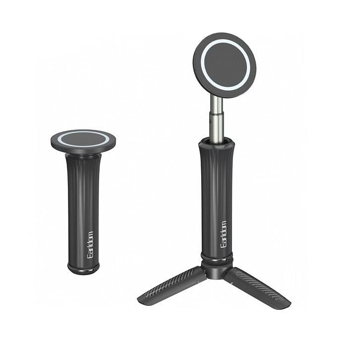 Earldom EH330 është një tripod kompakt dhe elegant për tavolinë, i pajisur me sistem magnetik MagSafe, që mundëson vendosjen e telefonit shpejt, sigurt dhe pa përdorim kabllosh apo kllapash. Me dizajn të qëndrueshëm, kënd rrotullues 360° dhe këmbë antirrëshqitëse, ky mbajtës është ideal për video-thirrje, përmbajtje sociale, live streaming apo përdorim të përditshëm në zyrë.
