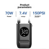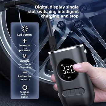 CZK-3668 është një pompë ajri elektrike portative me presion maksimal 150 PSI, e pajisur me bateri të integruar dhe ekran digjital për matje të saktë të presionit. Ajo ofron funksion auto shut-off, që ndalon automatikisht kur arrihet presioni i dëshiruar. Ideale për fryrjen e gomave të makinës, motorëve, biçikletave, topave dhe objekteve të tjera të fryrshme.