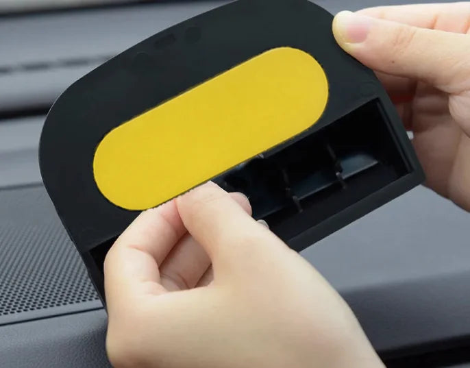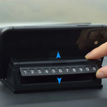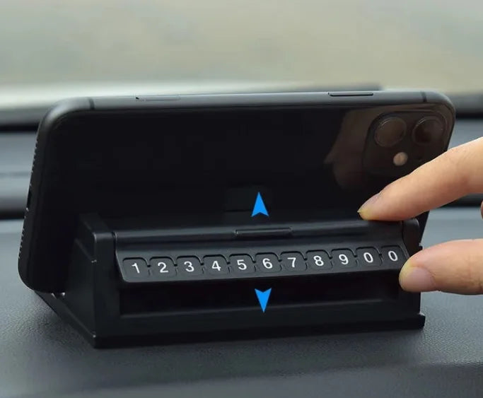 Ky aksesori 2-në-1 për makinë kombinon funksionin e mbajtësit të telefonit me tabelën e numrit të parkimit. Ai mundëson që të vendosni numrin tuaj të telefonit për kontakt kur parkoni në zona publike, ndërsa njëkohësisht shërben si mbajtës i qëndrueshëm për celular gjatë vozitjes. Dizajni i tij kompakt dhe elegant përshtatet lehtësisht në pultin e makinës, pa penguar fushën e shikimit.