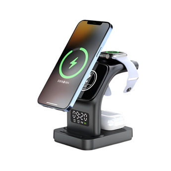Earldom WC37 është një karikues wireless shumëfunksional 5-në-1 që lejon karikimin e njëkohshëm të telefonit, orës inteligjente, kufjeve dhe pajisjeve të tjera. Ky karikues është i përshtatshëm për të gjitha pajisjet me standard Qi dhe ofron një mënyrë të organizuar për të karikuar pa kabllo të shumta. Me një dizajn modern dhe të kompakt, ai është i përkryer për tavolinën ose komodinën tuaj, duke përfshirë gjithashtu dhe ndriçim të butë për natën.