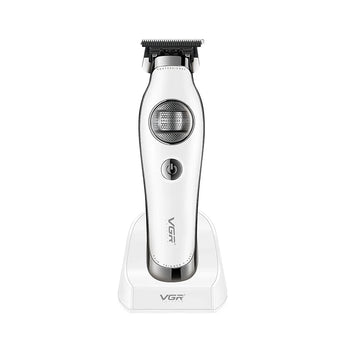 VGR V-880T është makinë rroje profesionale për flokë dhe mjekër, e ndërtuar për prerje të qëndrueshme dhe të saktë. Pajisja përdor tehe çeliku inox me precizion të lartë, të dizajnuara për prerje uniforme pa tërheqje të flokut. Falë motorit të fuqishëm dhe trupit ergonomik, është e përshtatshme si për përdorim shtëpiak ashtu edhe për sallone berberësh.