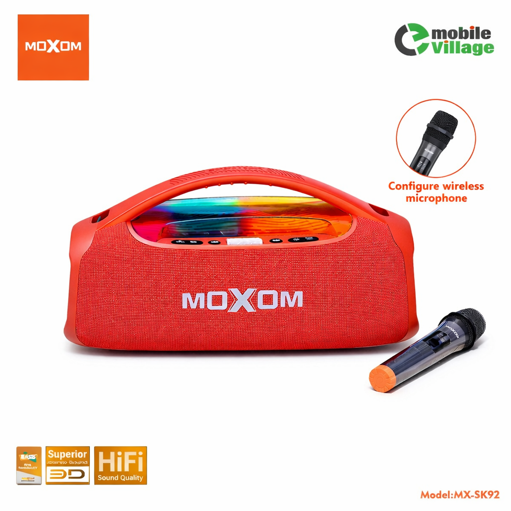 Altoparlanti Moxom MX-SK92 është një altoparlant portativ i fuqishëm, i ndërtuar për përdorim intensiv në ambiente të brendshme dhe të jashtme. Me fuqi dalëse 120W, tingull Hi-Fi dhe rezistencë ndaj ujit IPX6, ky model ofron performancë të lartë për festa, evente dhe karaoke. I pajisur me bateri 12.000mAh dhe mikrofon wireless, MX-SK92 kombinon volum të fortë, autonomi të mirë dhe funksionalitet praktik në një pajisje të vetme.