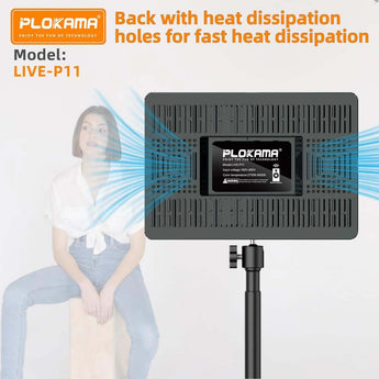 Plokama LIVE-P11 është një panel profesional ndriçimi me fuqi 45W, i krijuar për fotografi, video, livestream dhe makeup. Ofron dritë trengjyrëshe (Tricolor Light) – të bardhë e ftohtë, e bardhë e ngrohtë dhe neutrale – me mundësi rregullimi të intensitetit përmes telekomandës së përfshirë. Dizajni kompakt dhe stativi i rregullueshëm e bëjnë ideal për përdorim në studio apo në shtëpi.