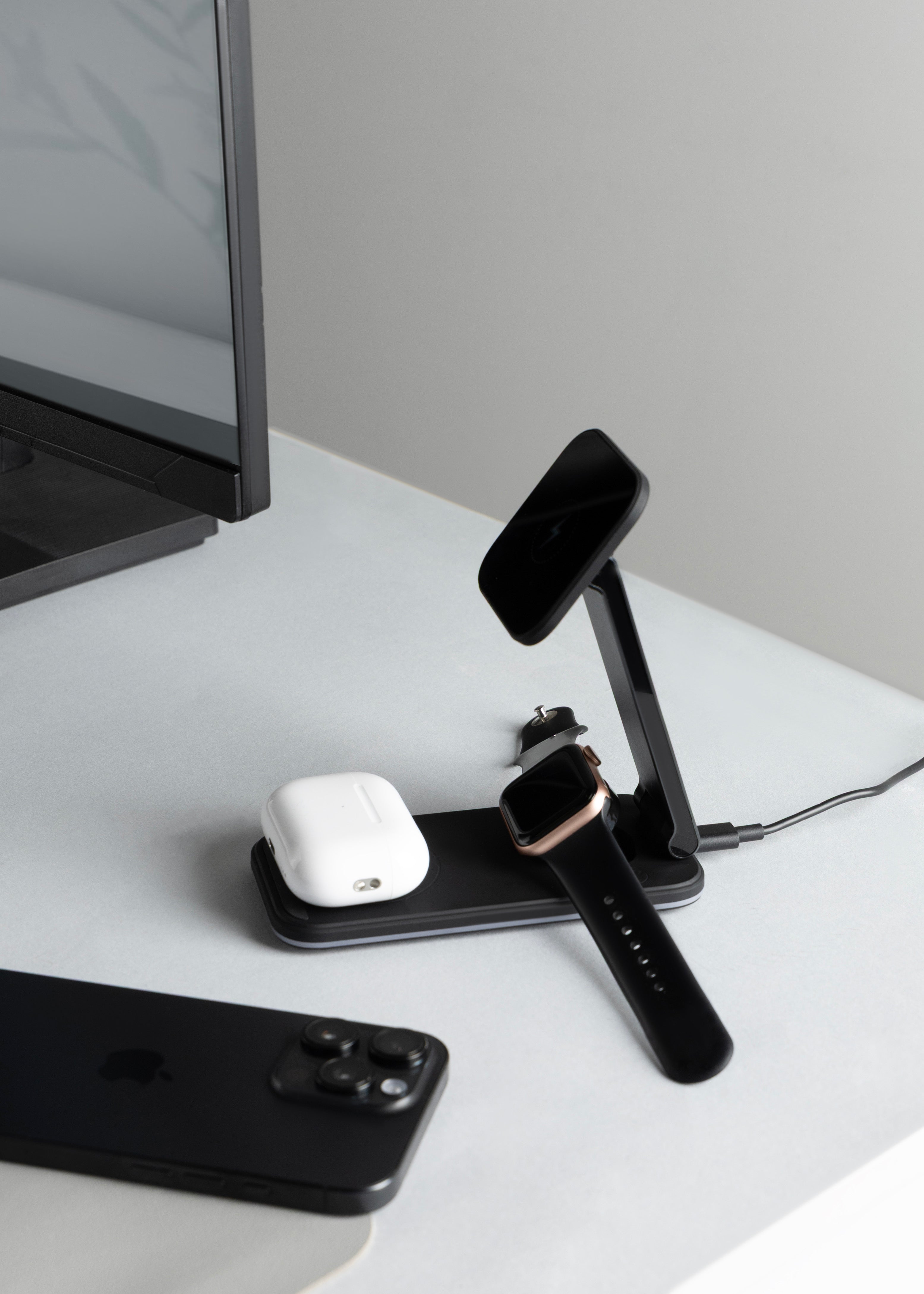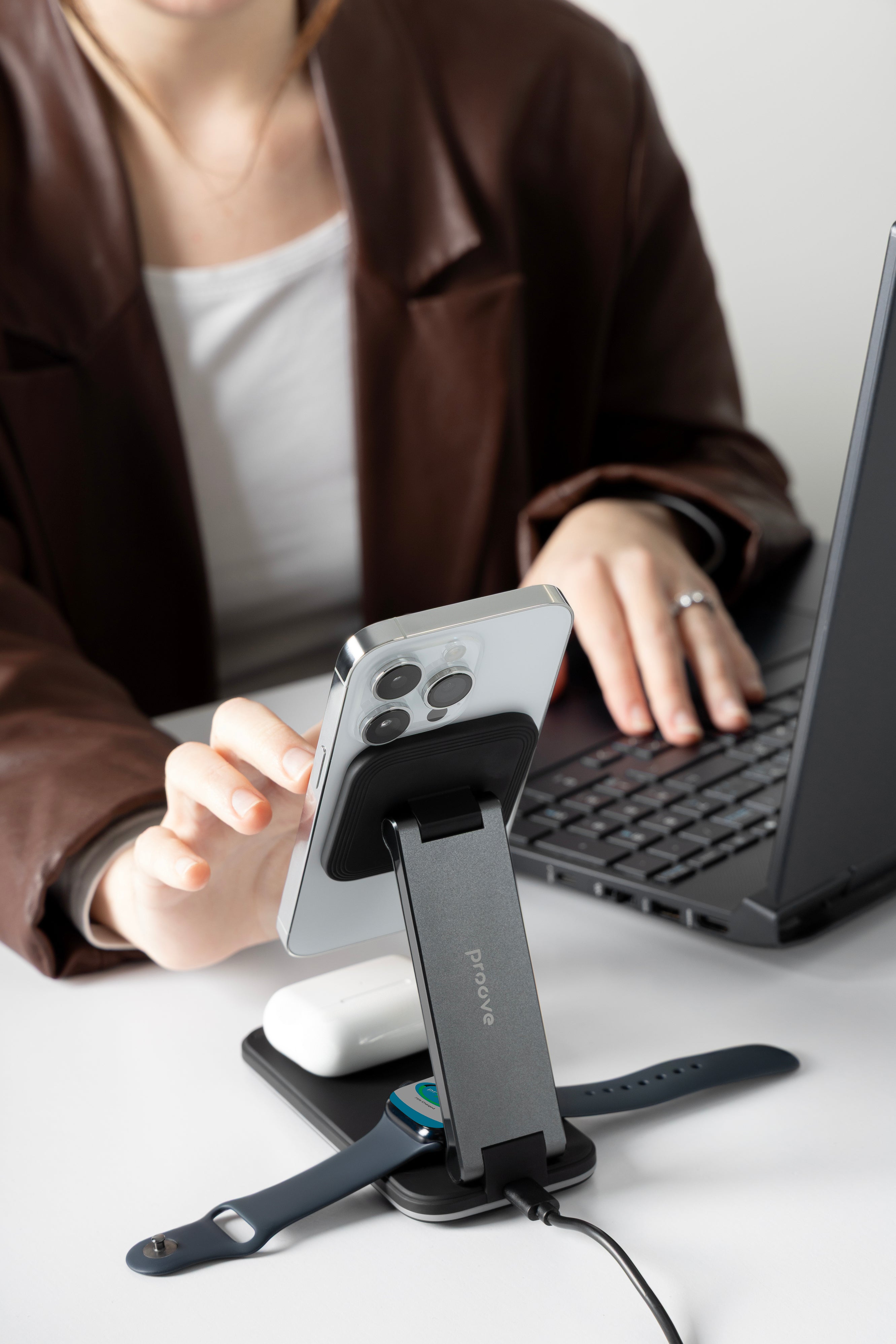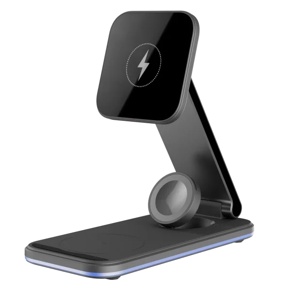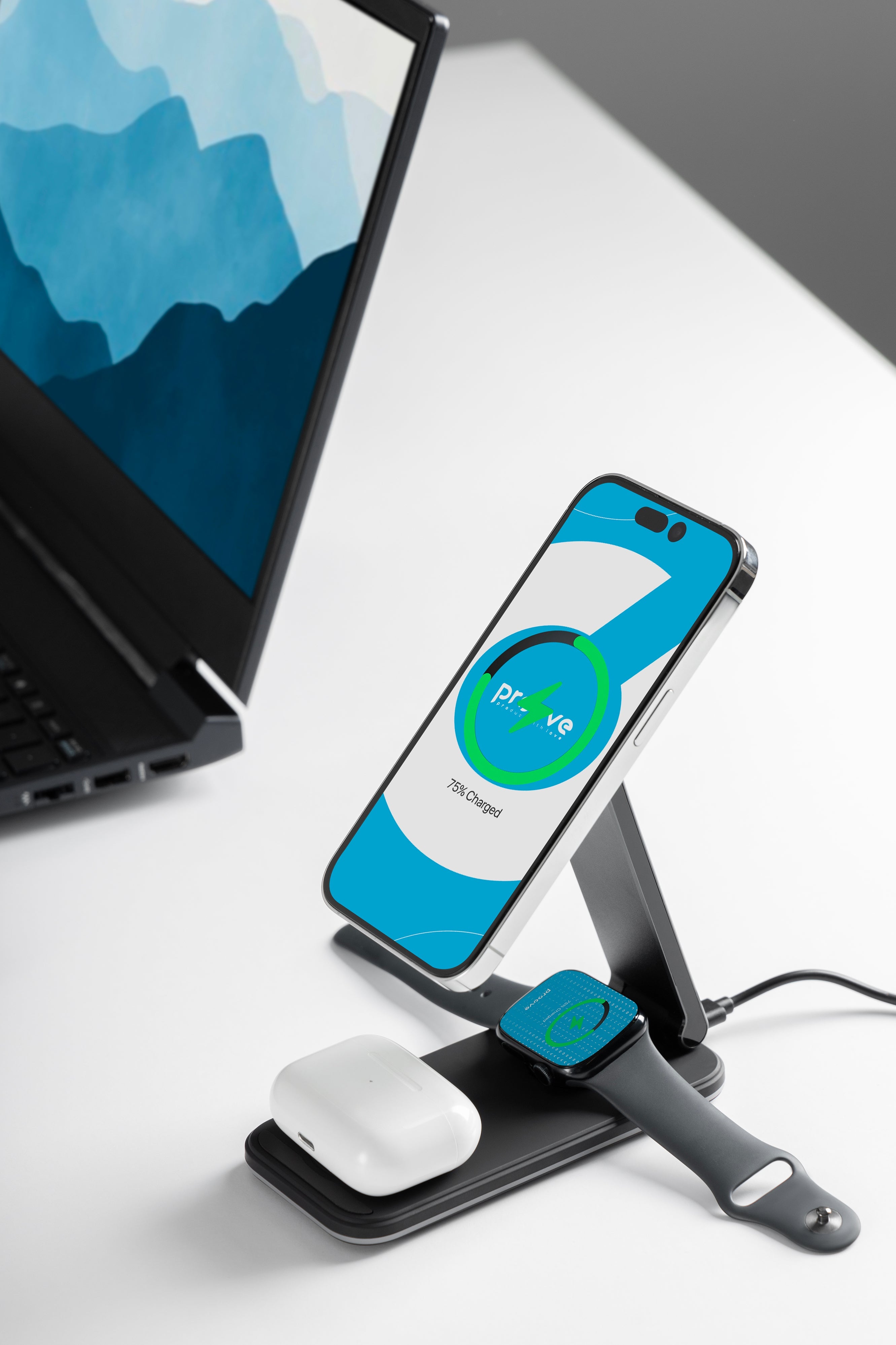 Karikuesi wireless 3 në 1 Proove Energy është zgjidhje praktike për karikim të njëkohshëm të smartphone-it, kufjeve wireless dhe orës inteligjente. Me fuqi maksimale 15W dhe mbështetje për standardin Qi, ofron karikim të qëndrueshëm dhe të sigurt për pajisje kompatibile. Dizajni kompakt me kombinim ABS dhe aliazh alumini e bën të përshtatshëm për tavolinë pune ose komodinë.