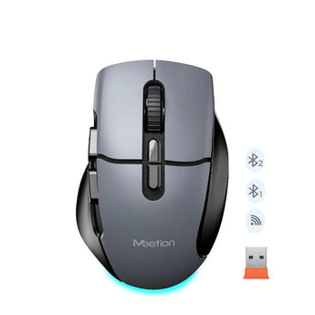 Mausi pa kabllo Meetion BTM001 është një pajisje moderne që ofron lidhje të dyfishtë (2.4GHz + Bluetooth) për të kaluar lehtësisht midis pajisjeve. Dizajni ergonomik, klikime të qeta dhe bateria e fuqishme e bëjnë ideale për punë zyre, laptop, tabletë apo ambiente ku kërkohet produktivitet i gjatë pa ndërprerje.