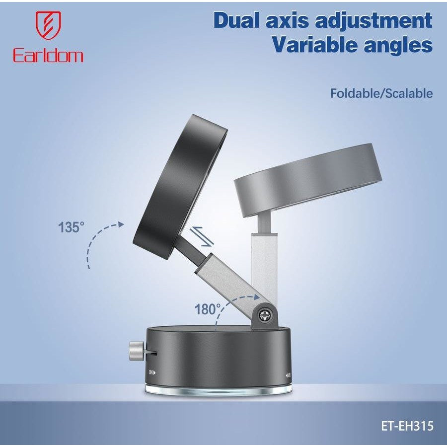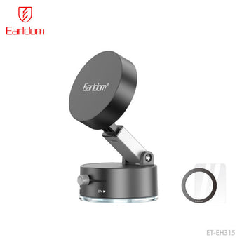 Earldom EH315 është një mbajtës celular për makinë që kombinon sistemin e kapjes me vakum dhe magnetin e fortë për të siguruar që celulari të mbetet pa rrëshqitje edhe në rrugë të lëkundura. Ai është dizajnuar për t’u ngjitur në xham, metal ose sipërfaqe të lëmuara dhe ofron rotacion 360° për pozicione ideale gjatë përdorimit si GPS apo për video. Materialet e tij të forta dhe shtresa e butë mbrojnë telefonin nga gërvishtjet.