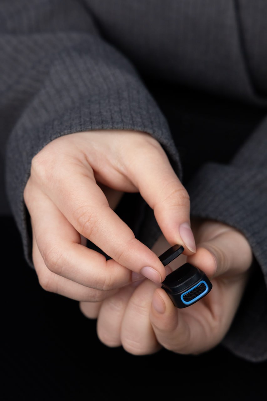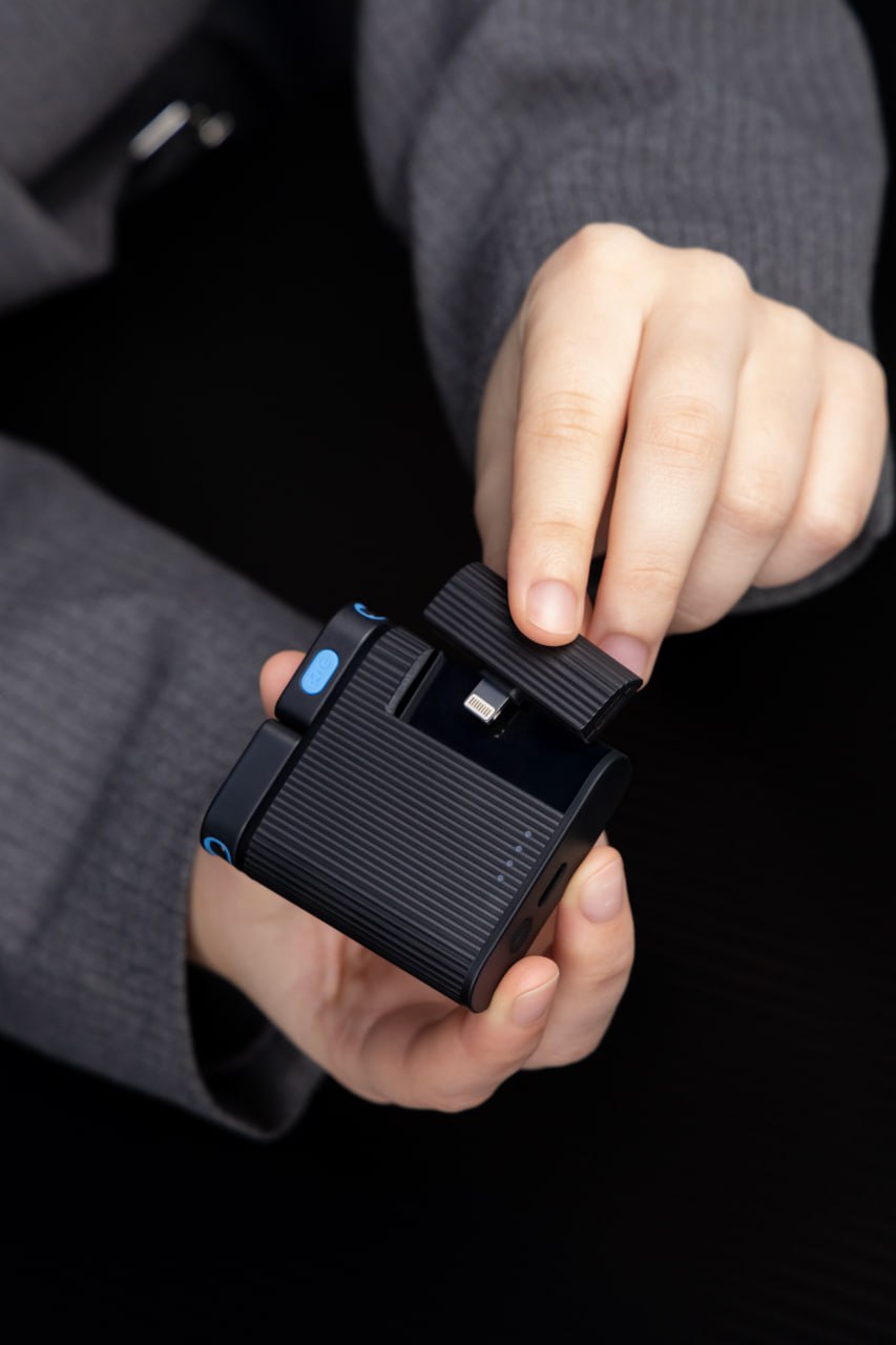 Kuti karikimi 600 mAh, shërben si stacion karikimi dhe mbrojtje për mikrofonët.