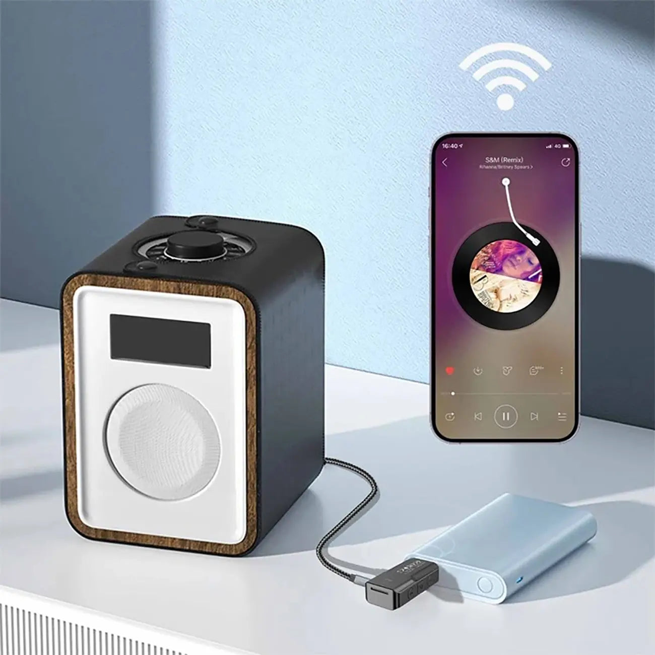 • Mbështetje universale – funksionon me shumicën e kufjeve, altoparlantëve dhe pajisjeve audio Bluetooth.